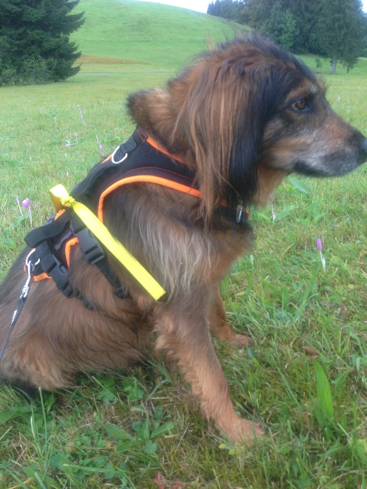Die gelbe Markierung bedeutet, dass dieser Hund keinen näheren Kontakt zu anderen Hunden oder Menschen wünscht, oder gar verträgt.